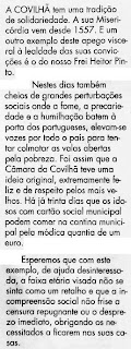 "O Sermão - Esta semana o clérigo Geraldes resolveu escrever um sermão sobre os/as covardes, no seu jornal católico/apostólico/romano NC. Entendeu fazê-lo do alto do seu púlpito, em tom inquisitorial, com acusações genéricas sobre os covardes e afins, que é sempre mais fácil e, seguramente, mais proveitoso para quem tem em vista atingir um determinado fim. Na verdade, ignorava esse tema fracturante da Igreja: os covardes e as covardes. Temos então, uma oratória transformada em alimento espiritual pelo nosso clérigo, se calhar para vender aos crentes, quanto mais não seja, para os levar a ler mais vezes a Biblia, que é um exercício que se recomenda sempre, em tempo de crise e de covardia. Bom, depois de ter percorrido a prosa, e tropeçado em evocações do Padre António Vieira e Almada Negreiros, como forma de legitimarem as afirmações que o clérigo ia produzindo, dou por mim no meio de uma campanha negra contra a imoralidade covarde, e pela salvação das almas. Tudo bem. Nesse exacto momento, lembro-me também de Antero de Quental, quando disse que o vírus que provocou a doença foi o cristianismo, que fez cair sobre o país uma sombra densa que se transformou no que podemos chamar de uma longa noite portuguesa. Outras estórias. Eis-me então chegado à frase mais interessante e sumarenta desta missiva que reza assim: “Os covardes (…) usam blogs cujos autores são desconhecidos (…) É gente séria esta?” Ou seja, no mundo complexo e sério do clérigo Geraldes, as pessoas sentem-se perdidas e ofendidas, sem esse recurso sistemático à autoridade de autor, como se a ideia não valesse por si, e as pessoas só fossem capazes de a acolher, não pelo que ela vale em si mesma, mas quando imposta pelo recurso autoral. Pelo contrário, estou convencido, que os leitores podem ler os textos sem saberem quem são os seus autores, e nem por isso deixarão de lhes atribuir significado. Penso que o texto deve funcionar por si, sem necessidade de o nomear. Isso não impede que um leitor, qualquer leitor, possa construir um sentido ou concluir pela falta dele. De uma coisa tenho a certeza, o direito de propriedade sobre os posts que escrevo, aos poucos, deixam de pertencer-me, e passam para o lado de quem os lê. É uma velha questão da estética da recepção, que não vou aprofundar para não me desviar do assunto. Mas é claro que a covardia tem as costas largas, e o fito de tanta prosápia do clérigo Geraldes não era, seguramente esse. Vamos então ao que interessa: Os blogues continuam a ser, ao contrário dos pasquins paroquiais, os poucos espaços de livre opinião não controlada pelo poder autárquico. Como todos sabemos: a imprensa local é ainda hoje muito dependente da publicidade local e pública, o que limita, demasiadas vezes a sua independência política. Os blogues anónimos e não anónimos têm sido, em muitos lugares, um espaço raro de opinião livre. Esse é que o problema, e o clérigo Geraldes sabe isso; a nomenklatura local está pouco habituada à crítica e à denúncia. A aversão à crítica livre é, aliás, uma característica comum aos autarcas, mas principalmente à Igreja, historicamente intolerante com o diferente e o contraditório; era outra estória, mas não tenho tempo. Certamente, o problema não está nos/nas covardes, o problema reside no senhor padre, que não se dá bem com a liberdade de expressão. É sabido que ainda perduram genes do Santo Oficio em alguns sectores da Igreja portuguesa, até porque, a censura ideológica e a perseguição religiosa, institucionalizada em força até ao século XIX, ajudou a criar esses tiques de exclusivismo e intolerância. Pois assim se fez o caminho para um longo período de igreja única e de partido único, que marcou três quartos do século XX. Mas os tempos hoje, são outros, mesmo que isso desgoste ao clérigo Geraldes. Bom, a prosa já vai longa, vou mas é aspergir a cama com água benta e rezar as três avé-marias do costume, não vá o diabo tecê-las."